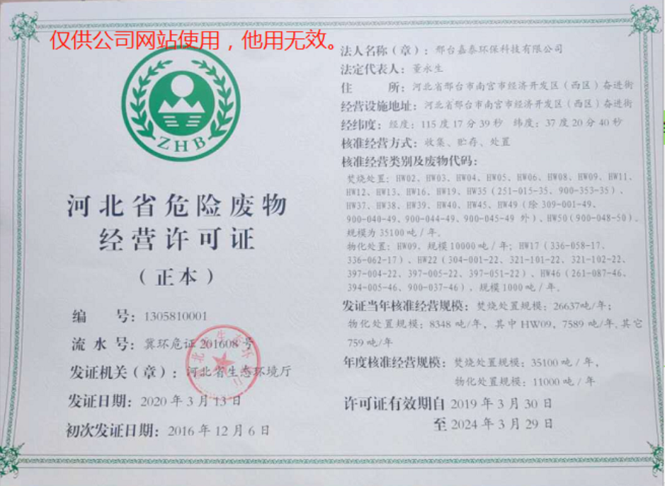 名稱:危險廢物經營許可證